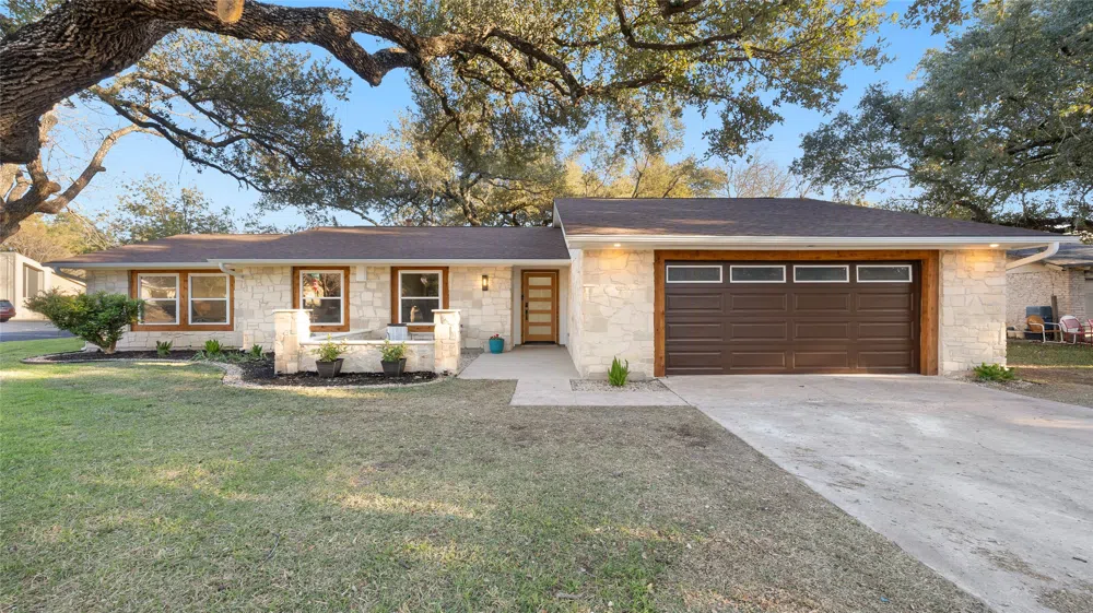 Welcome home to this inviting, beautifully updated modern ranch nestled among giant oak trees in the north Austin neighborhood of Barrington Oaks. Encompassing a corner lot that spans almost 1/3 of an acre, the property lies in one of the highest rated school zones in Austin. Imagine...sitting in the front courtyard with family or friends while local deer pass through just several yards away. Or, perhaps gardening in the shade of the backyard sanctuary while the kids splash away in the pool you just installed. There's also plenty of room for an addition and a storage shed. So much is possible given the expansive features of this property. The home itself showcases a timeless blend of warm colors and natural materials, beginning with its alluring curb appeal and extending seamlessly into its open, functional interior. Native stone, cedar and oak accents, brushed maple flooring...every design element was thoughtfully selected and just feels right. Practical delights include new dual-pane windows, a new roof, new electrical (partial), new tankless water heater, new R-38 attic insulation, PVC and PEX/copper plumbing, full privacy fence, large bathrooms, an oversized fully finished two-car garage, and a gas fireplace. House chefs will enjoy spending time in the kitchen where new inset cabinets, Calacatta quartz countertops, glossy sage backsplash tile, and Thor/KitchenAid appliances await. The formal dining room can be utilized in tandem or can be easily converted into an office/4th bedroom. For the wine and libation connoisseurs, a stand-alone bar with dual-zone beverage cooler and up/down LED shelf lighting sits poised to show off the finest of spirits to eager sippers. Finally, be ready for tons of compliments on the home's nighttime presence as neighbors will surely spectate in awe at the glorious landscape lighting that outlines the stone facade and fills the vast living canopies.