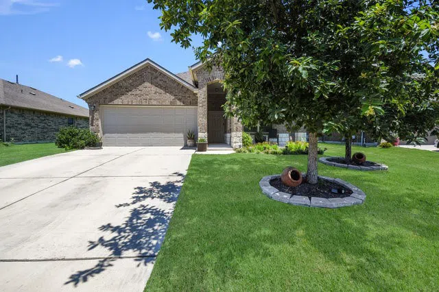 All sides brick and located on a quiet street, Home faces North, making home more energy efficient, also the power grid is connected to police station grid, which could reduce the likelihood for power outages. Meticulously maintained one-story home located in Magnolia Crk, Leander community. Lots across the street are beautiful open lots with no homes, giving extra privacy. Sellers added a new roof in 2022, recessed lights in the kitchen and living room, wood textured vinyl flooring throughout the entire house, and in Kitchen new Bosch dishwasher. The refrigerator in the kitchen will not be conveyed, Large TV in the living room is negotiable otherwise will not be conveyed. Owners cared for the home as you can see in pictures or when you show home. Lots of natural lighting, new flooring, and an open floor plan with a large kitchen overlooking spacious family room for family gatherings or entertainment. Tiles in wet areas, large 5"The covered backyard patio highlights the larger backyard perfect for gardens or family playtime for kids.